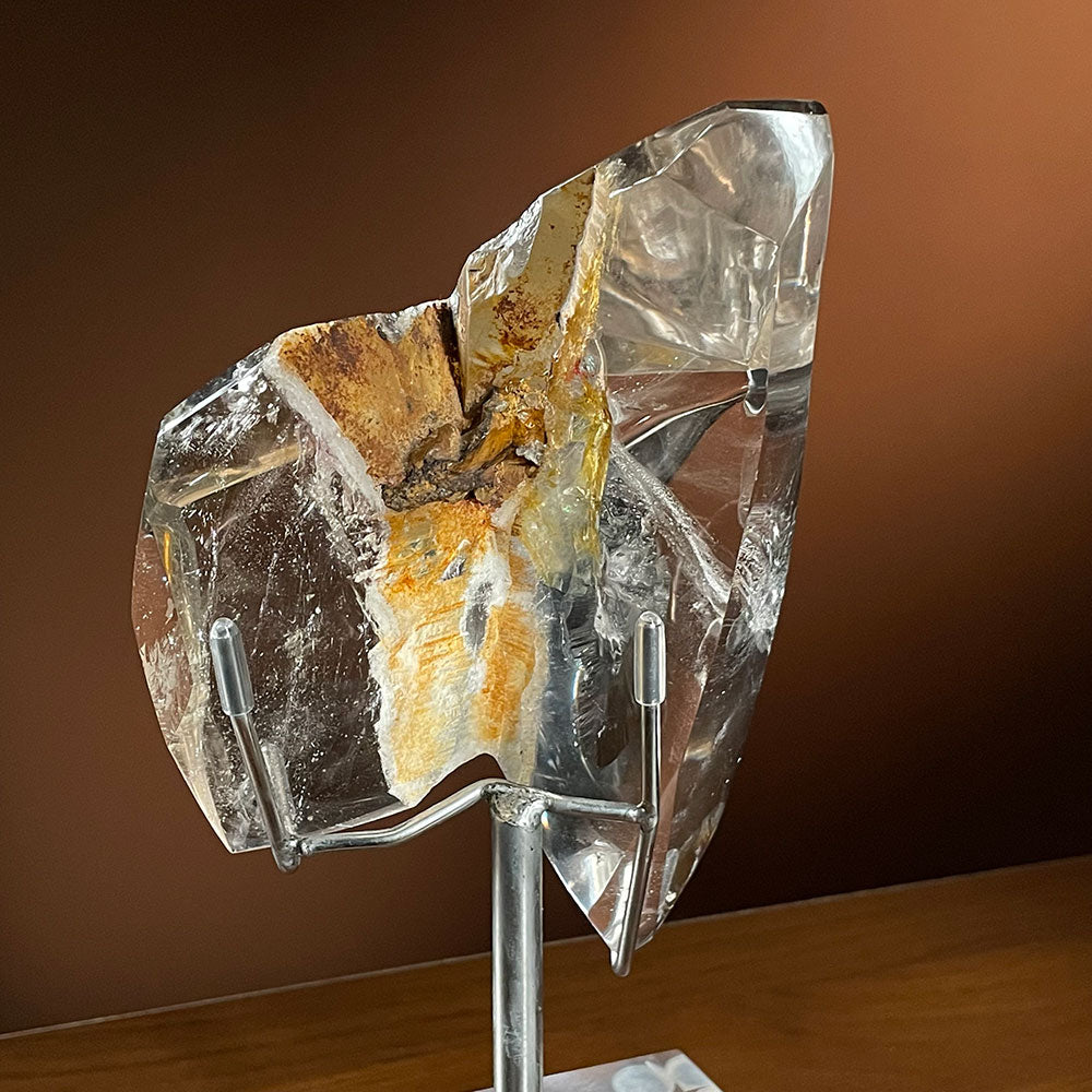 Gallery-Ready Display: To showcase its unique cut, we’ve included a complimentary DIY clear acrylic base with a metal bracket, transforming this raw stone into a modern, high-end centerpiece.