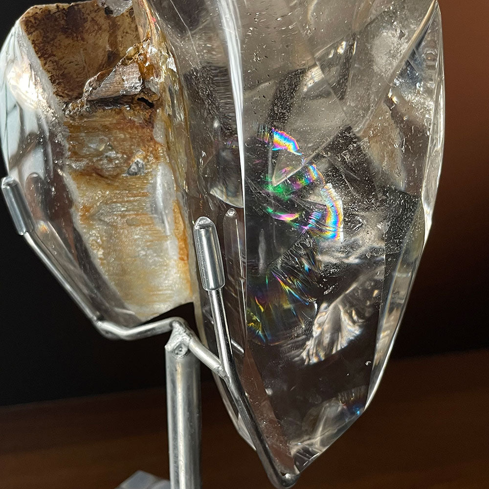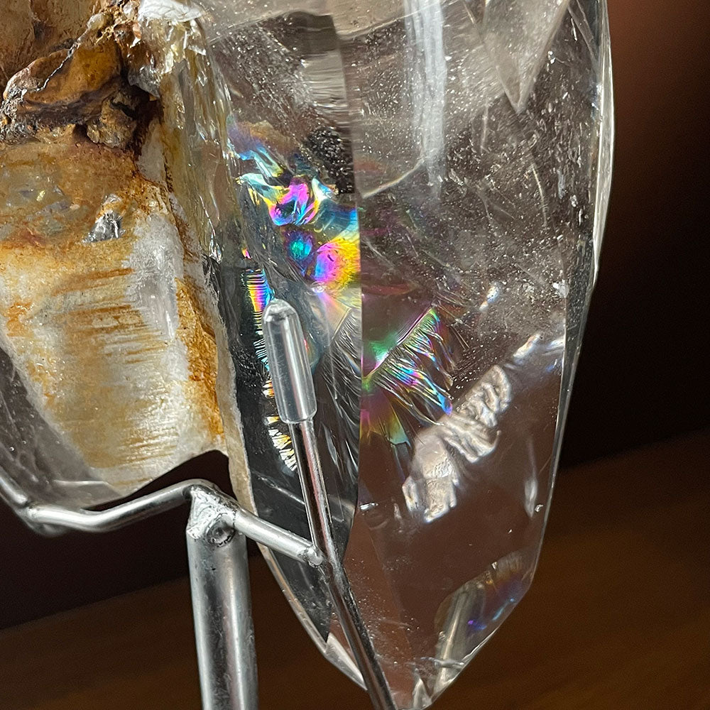 Breathtaking "Angel Wing" Rainbow: Take a close look at the detailed photos. A natural internal fracture has created an unusually large, highly concentrated rainbow flash that resembles an iridescent wing or peacock feather. This level of vivid, prismatic color in a clear quartz matrix is exceptionally rare.