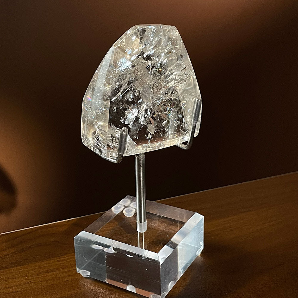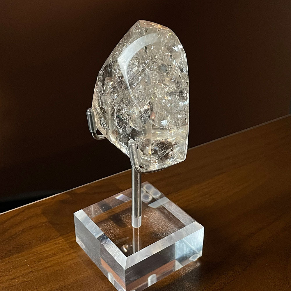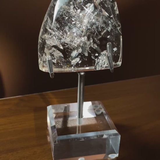 Included in Box: Exact Clear Quartz freeform and one FREE DIY acrylic/metal display stand.