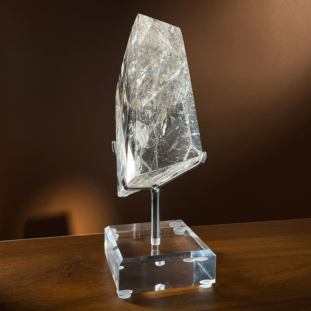 Included in Box: Exact large Clear Quartz freeform and one FREE DIY acrylic/metal display stand.