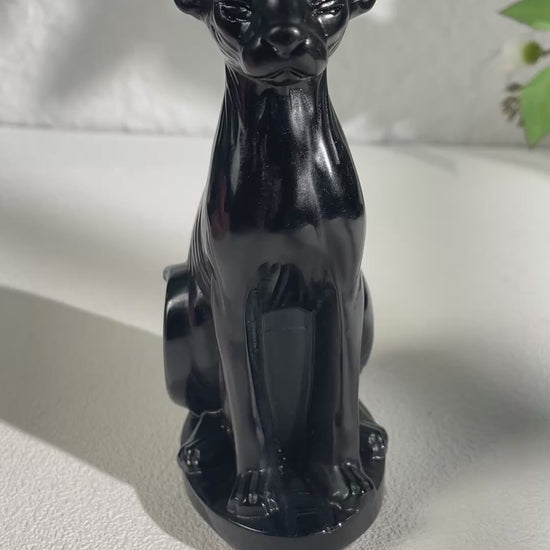 Note: Obsidian is a natural volcanic glass. The statue is expertly polished to a completely smooth, reflective finish. Please handle with care to avoid chipping the delicate carved ears.